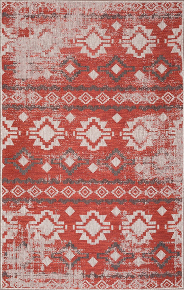 Elevate your outdoor space with Savanna Red Geometric Premium Indoor-Outdoor Rug, designed for high-traffic areas....