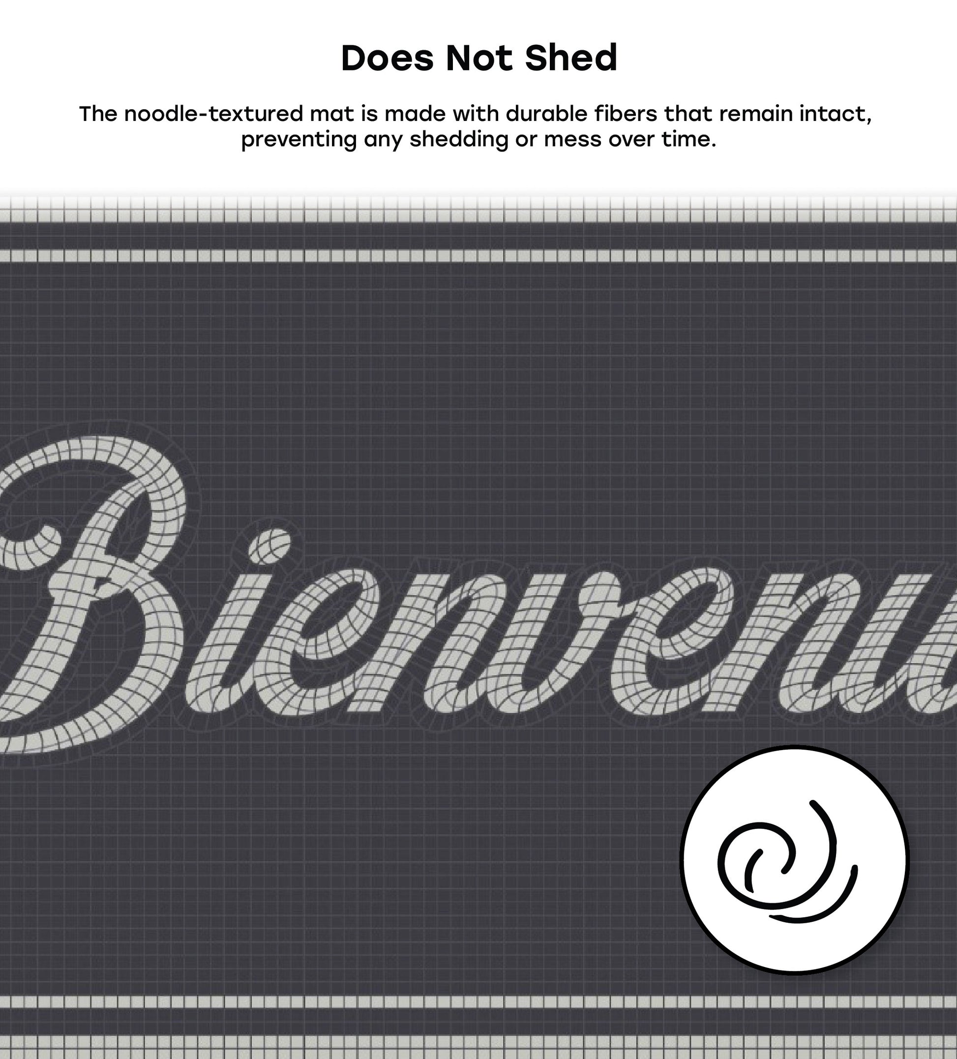 Does Not Shed: The noodle-textured mat is made with durable fibers that remain intact, preventing any shedding or mess over time.