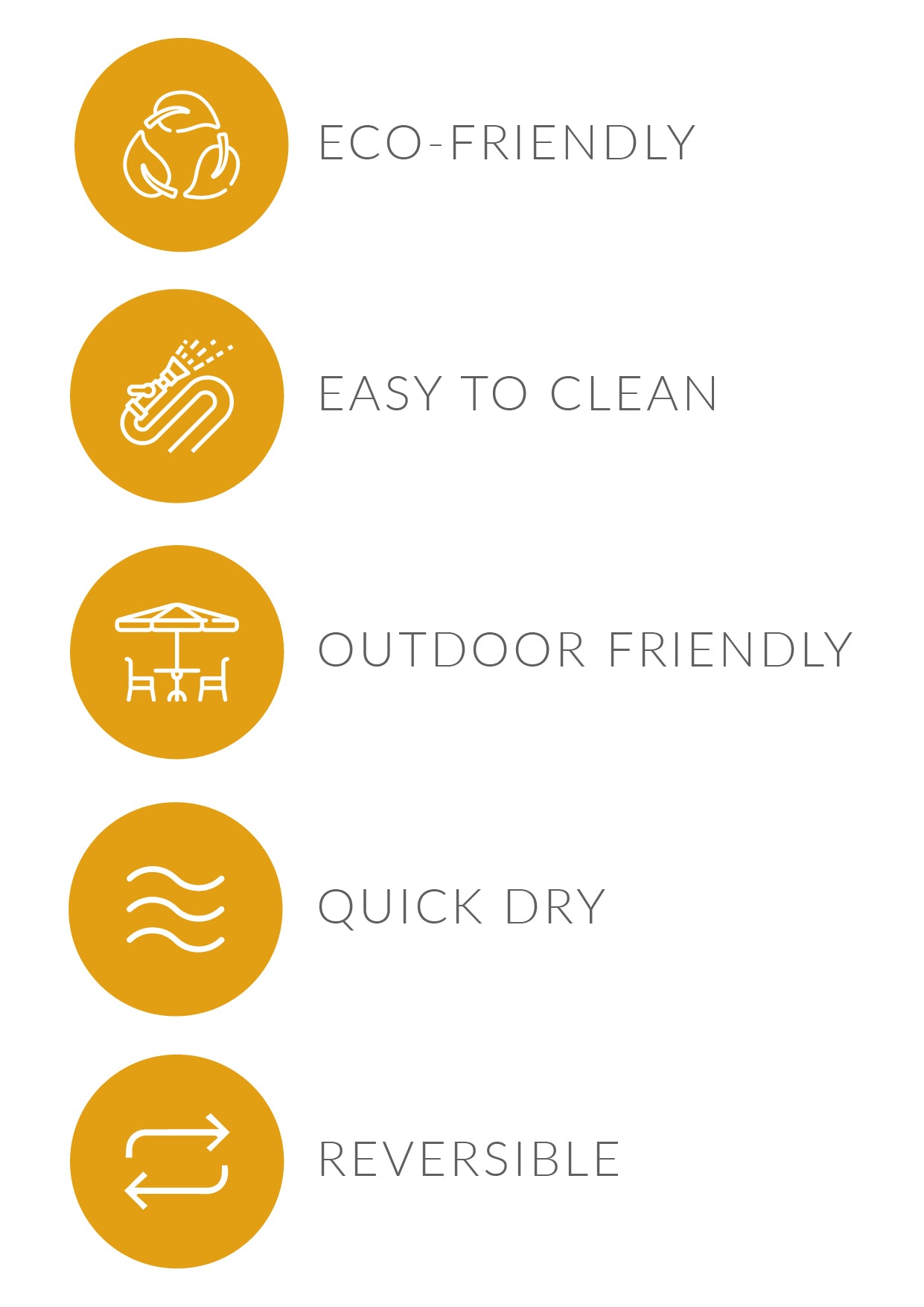 Notre surface nécessitant peu d'entretien est idéale pour une utilisation en extérieur grâce à son matériau facile à nettoyer et à séchage rapide. Idéal pour votre terrasse, votre salon ou votre espace extérieur, ce tapis est idéal pour tout espace nécessitant plus de style et de fonctionnalité.