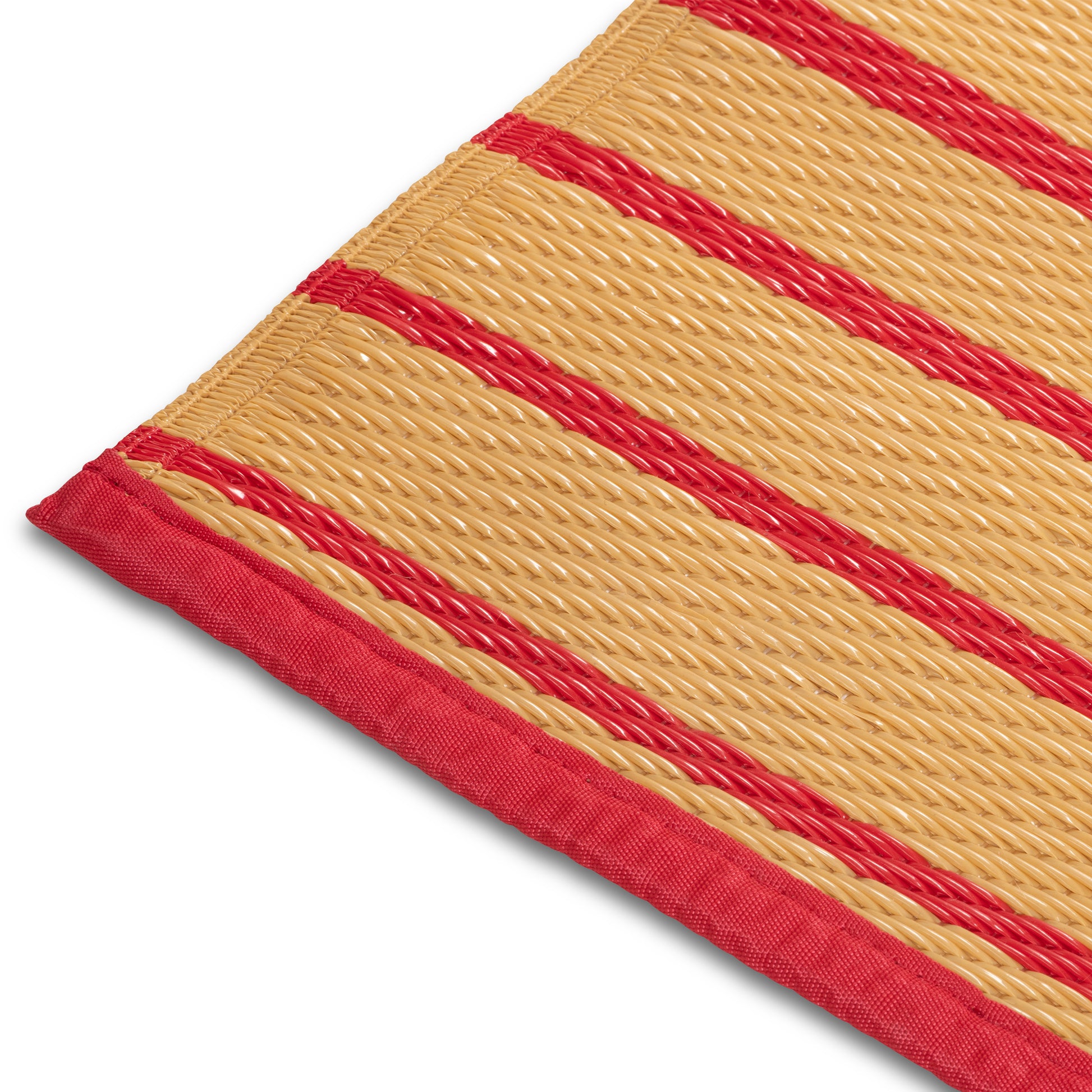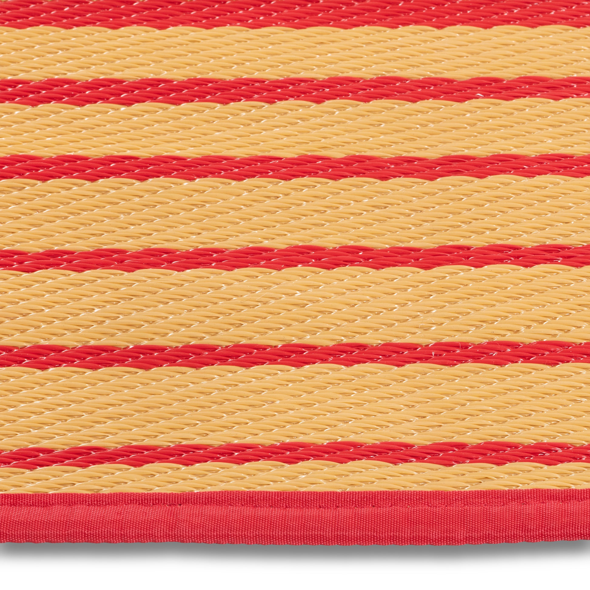 Ajoutez des imprimés et des couleurs éclatantes à n'importe quel espace à l'intérieur ou à l'extérieur de votre maison avec le tapis réversible intérieur/extérieur à rayures rouges . Profitez de la combinaison parfaite de durabilité et de décoration polyvalente avec ce tapis réversible - profitez de vos motifs amusants et modernes de n'importe quel côté. Accentuez facilement les meubles d'intérieur ou les chaises de patio extérieures avec cet imprimé à rayures rouges vibrant inspiré de l'été.