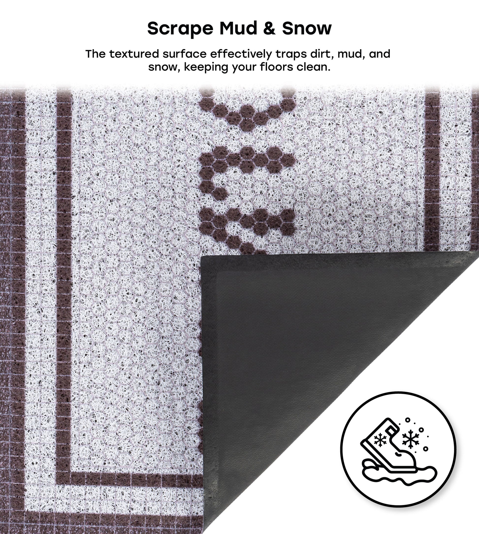 Scrape Mud & Snow: The textured surface effectively traps dirt, mud, and snow, keeping your floors clean.