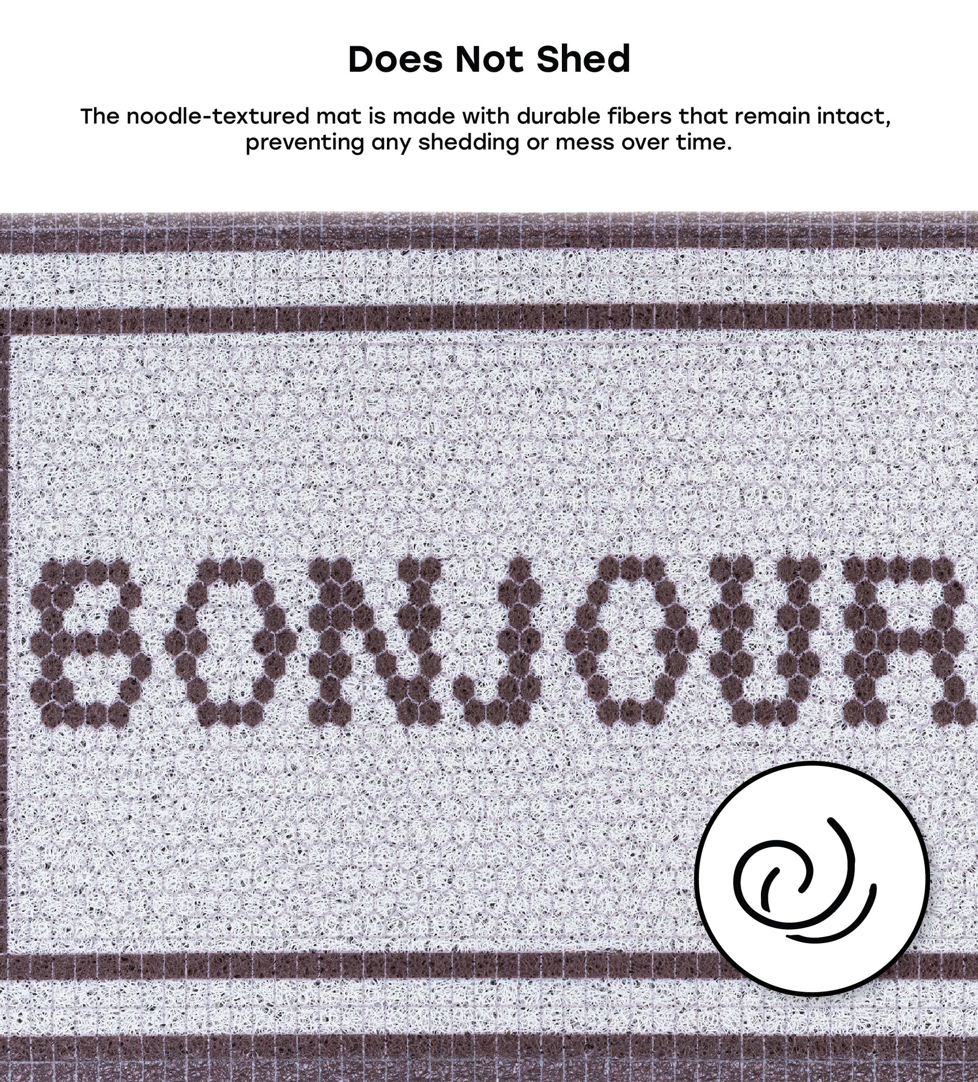 Does Not Shed: The noodle-textured mat is made with durable fibers that remain intact, preventing any shedding or mess over time.
