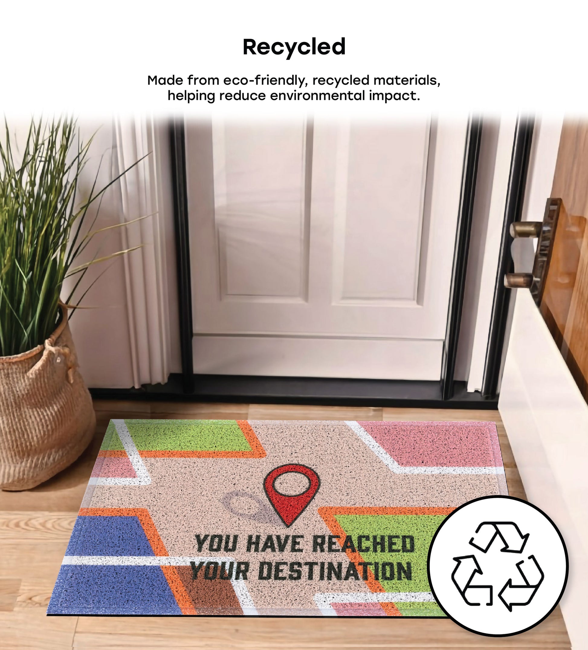 Our Matologie Easy Clean Indoor-Outdoor Doormat effortlessly combines style and function. Crafted from recycled materials, this Location Map Noodle Doormat features a vibrant blend of colors with a cool location design.