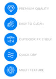 Instructions d'entretien : Passez simplement l'aspirateur ou utilisez un chiffon humide pour tout nettoyage intérieur. Pour enlever les débris extérieurs, secouez facilement la saleté ou arrosez le tapis pour un nettoyage instantané.