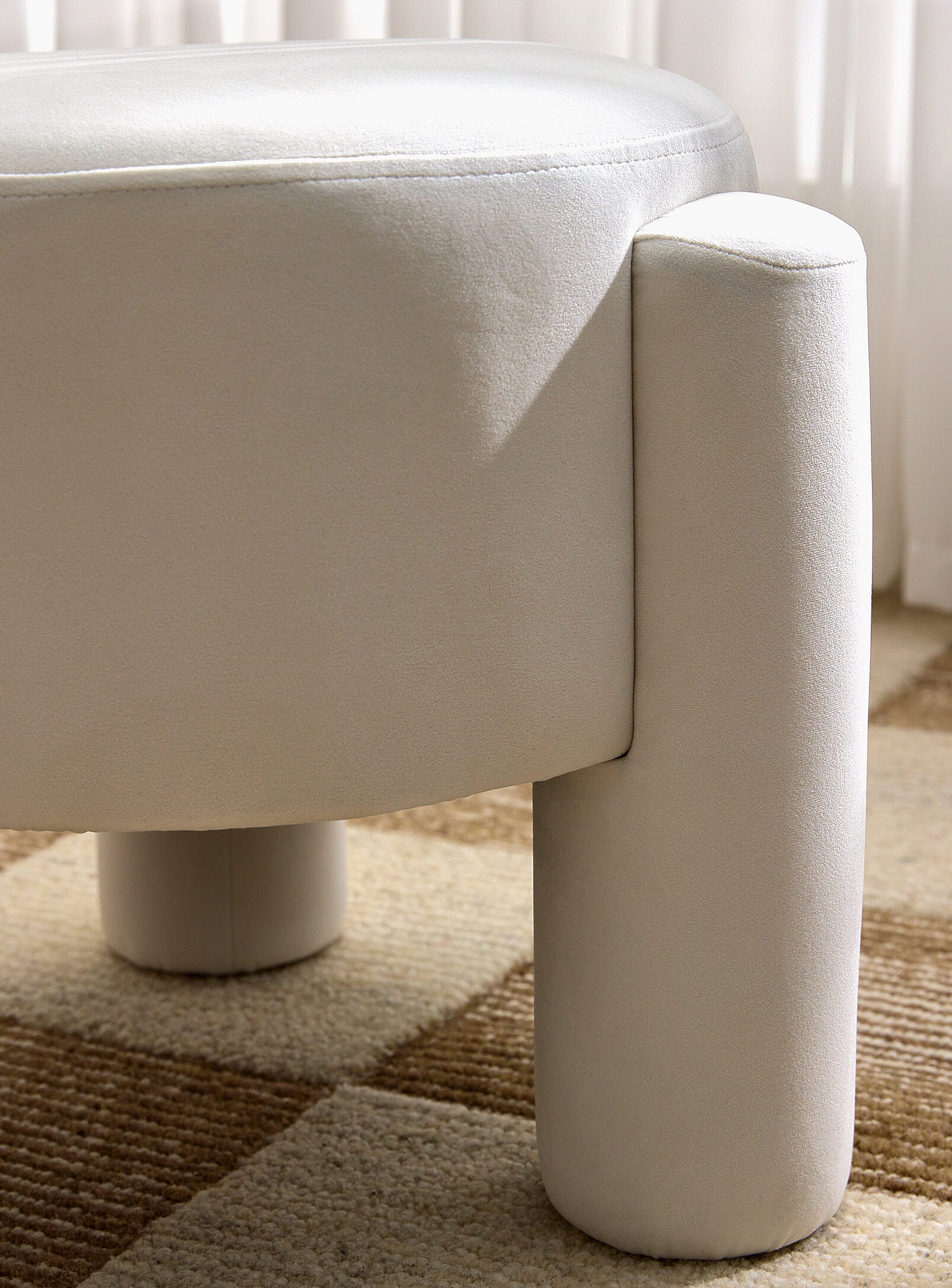 Add a touch of refined luxury to your decor with this circular pouf, featuring stylish nested cylindrical legs. The plush velvet upholstery in on-trend colors brings a sense of opulence, while subtly nodding to retro influences.