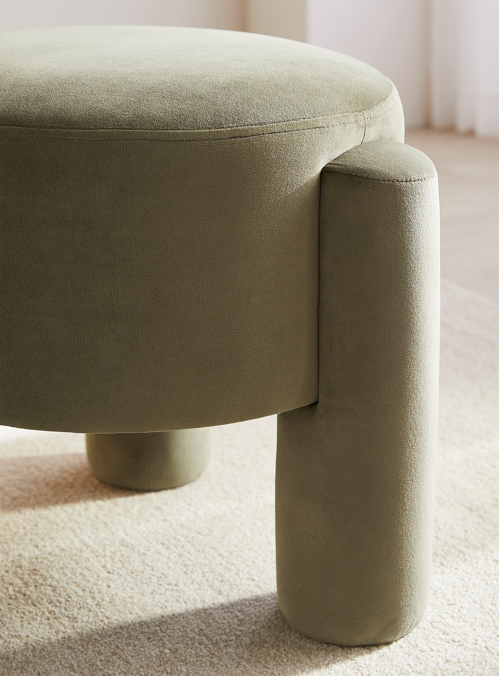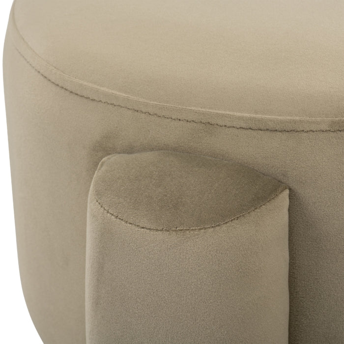 Add a touch of refined luxury to your decor with this circular pouf, featuring stylish nested cylindrical legs. The plush velvet upholstery in on-trend colors brings a sense of opulence, while subtly nodding to retro influences.