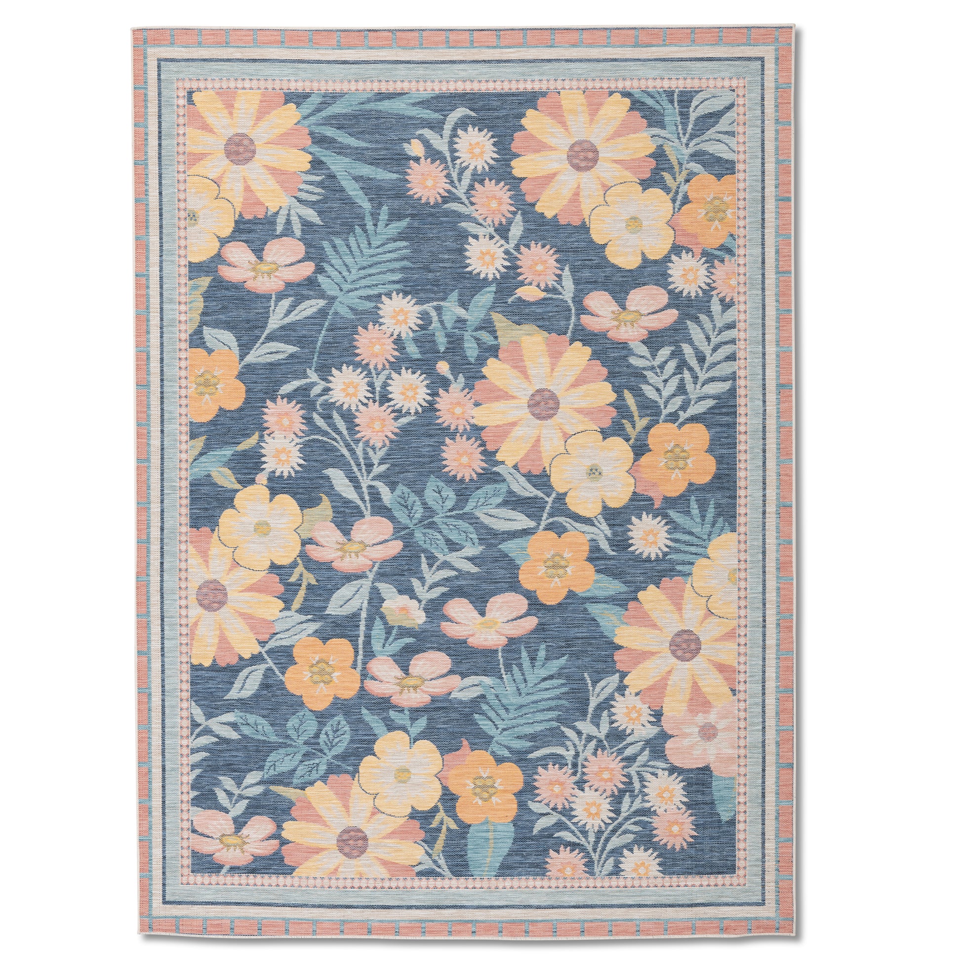 The Floral Harmony Navy Outdoor Rug features a soft, serene floral design set against a rich blue navy base. Delicate flowers in shades of yellow, beige, and orange, complemented by sage green leaves, seem to float gently on the river surface, evoking its calming flow of a river. The design’s subtle beauty brings a refreshing and inviting atmosphere, perfect for creating a cozy outdoor space filled with the vibrant colors of the season.