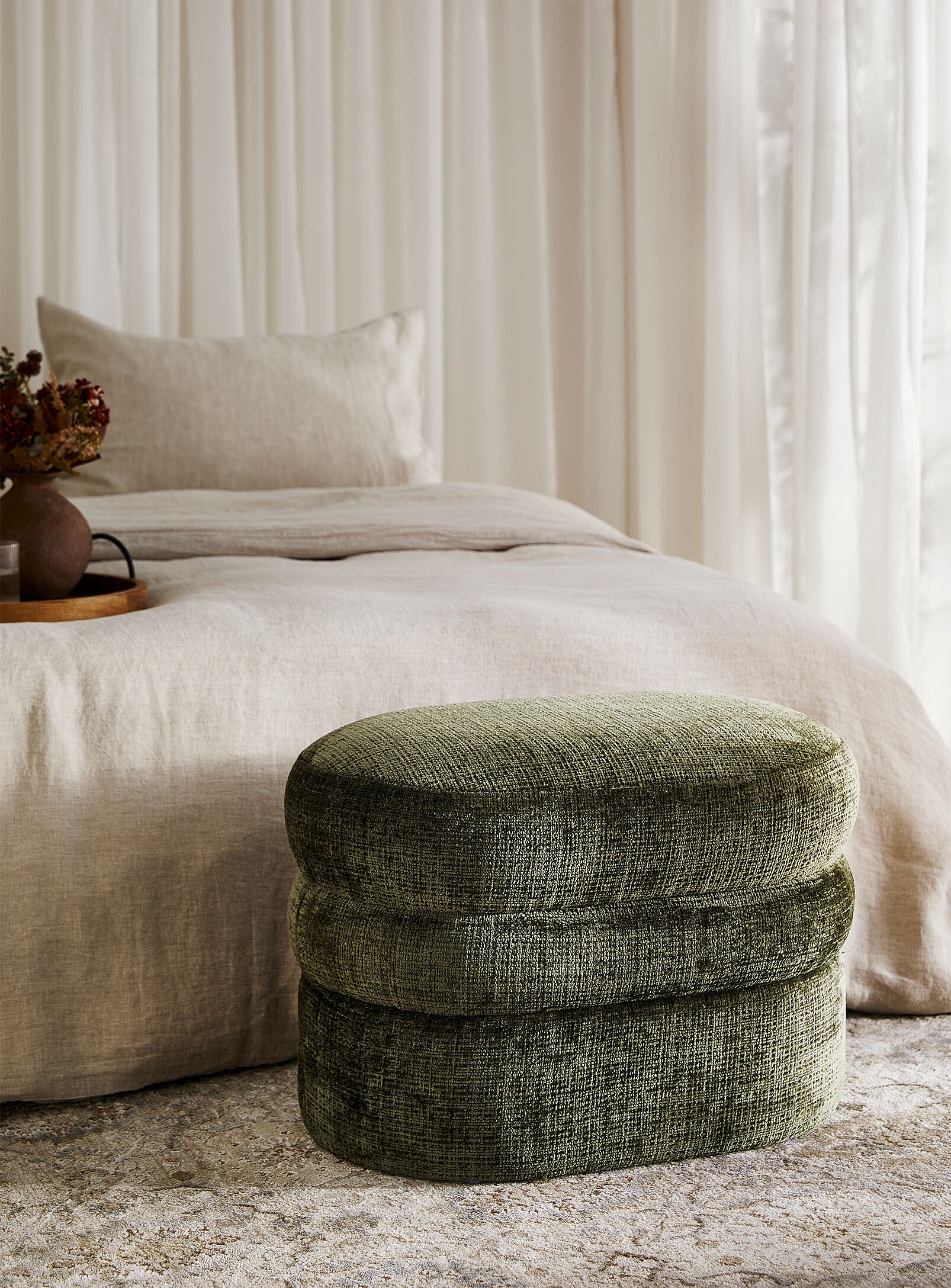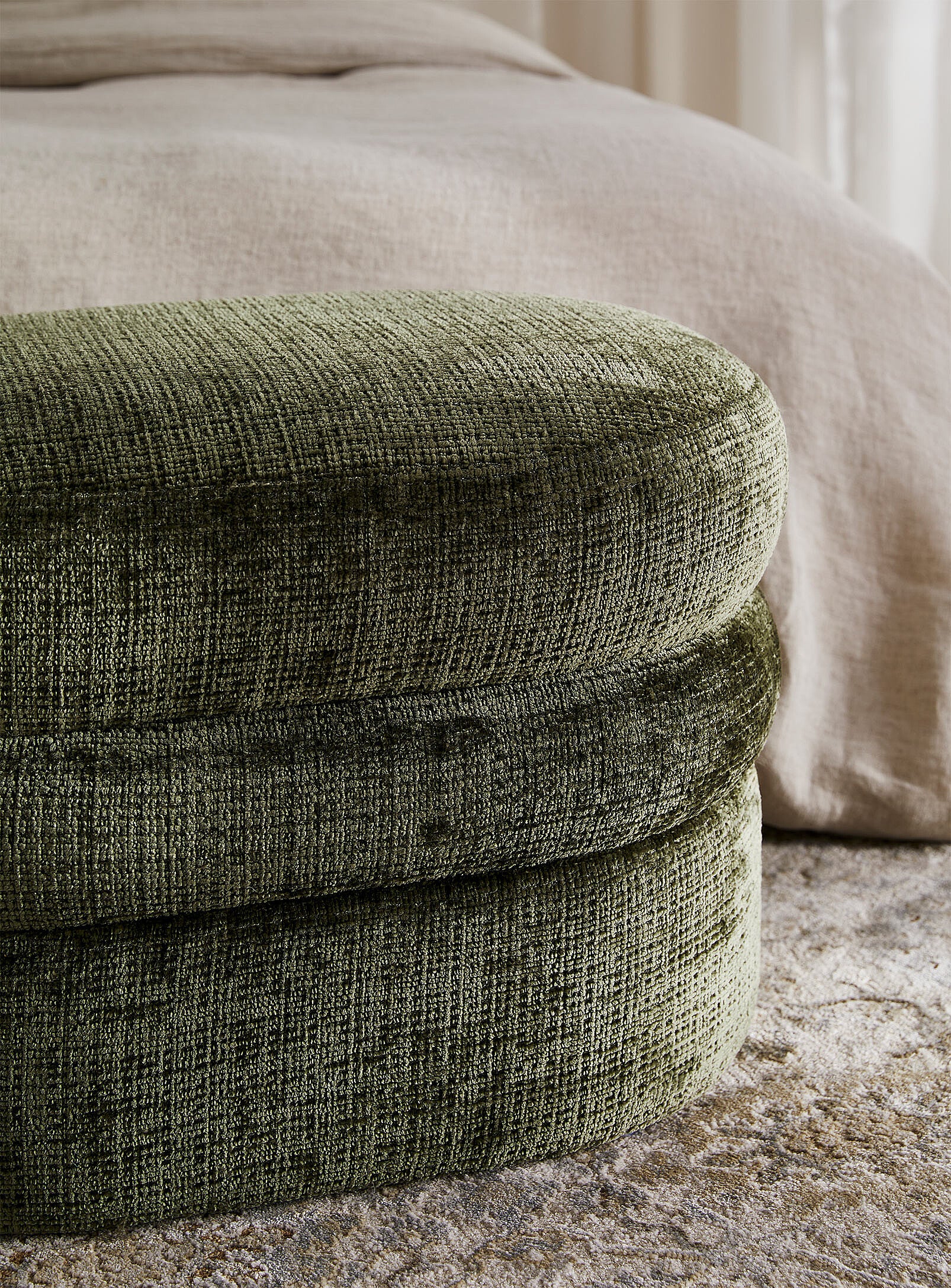 Infuse your home with contemporary elegance and cozy charm with this bench, fully upholstered in bouclé-textured fabric.