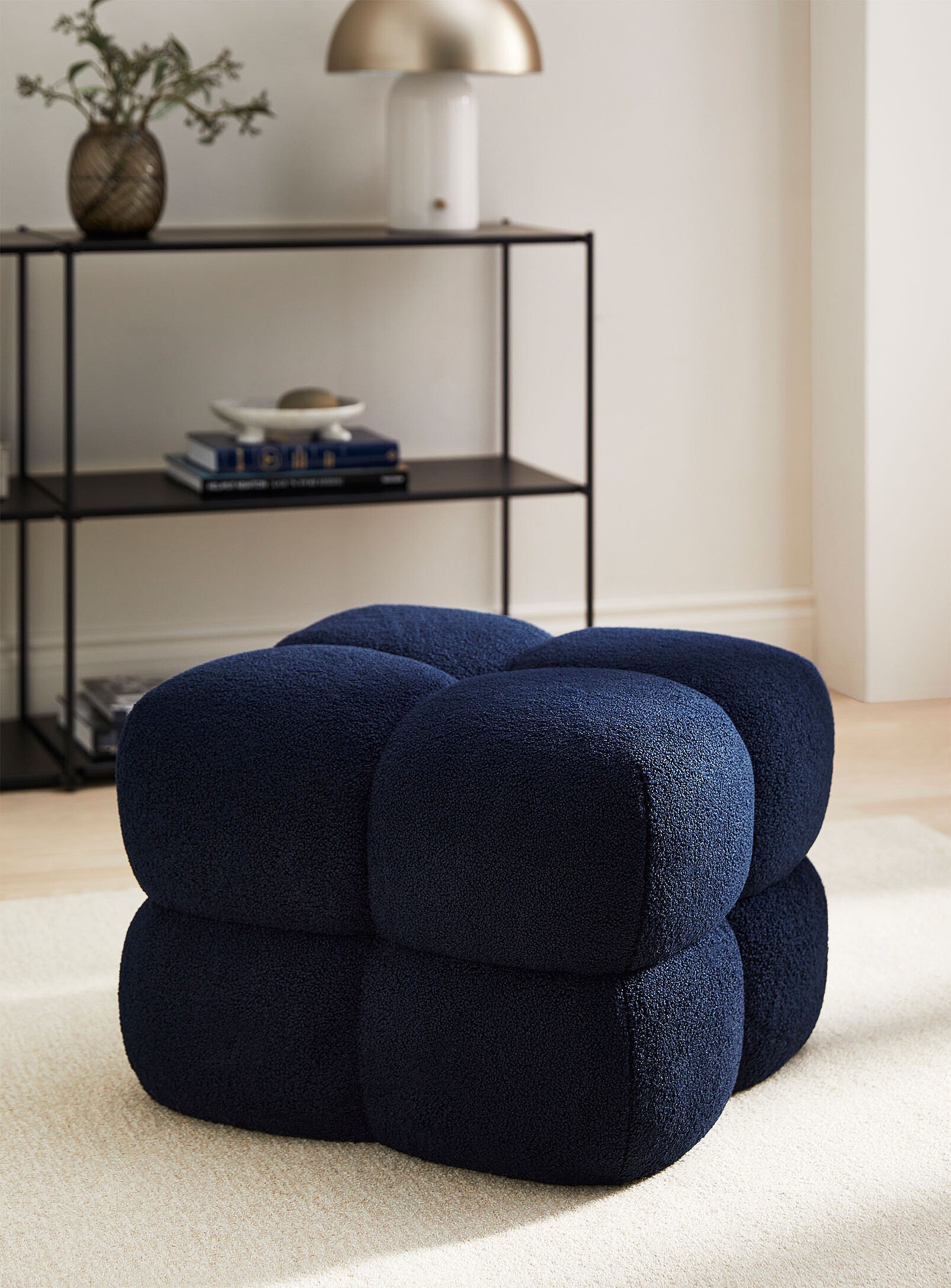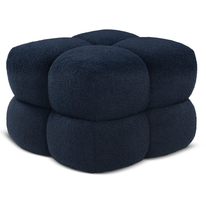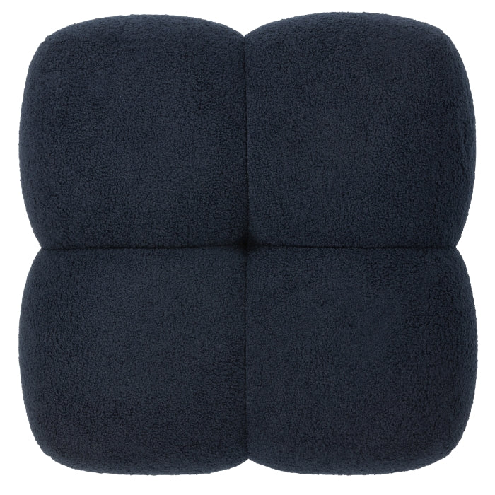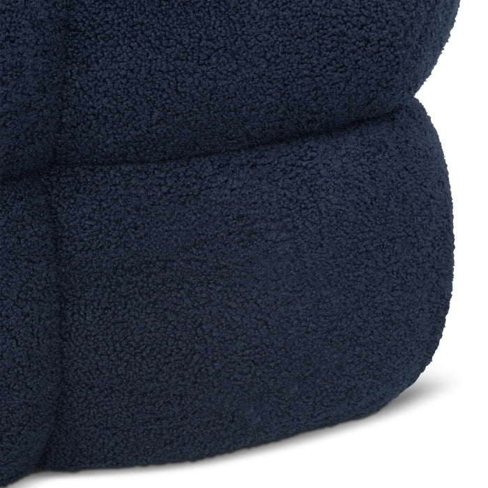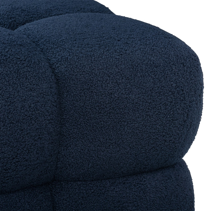 Its clean, geometric frame pairs beautifully with the quilted texture and cozy Sherpa fleece bouclé fabric, creating a refined yet inviting atmosphere in any room.